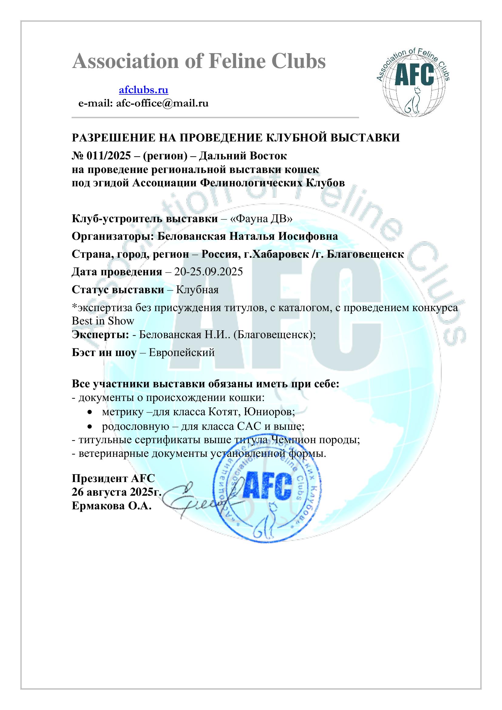 г.Москва "AFC" Ермакова О.А. |